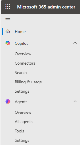 - Le portail M365 Admin Center comporte deux sections distinctes pour Copilot : « Copilot » (paramètres, connecteurs, facturation) et « Agents » (inventaire, déploiement, outils).