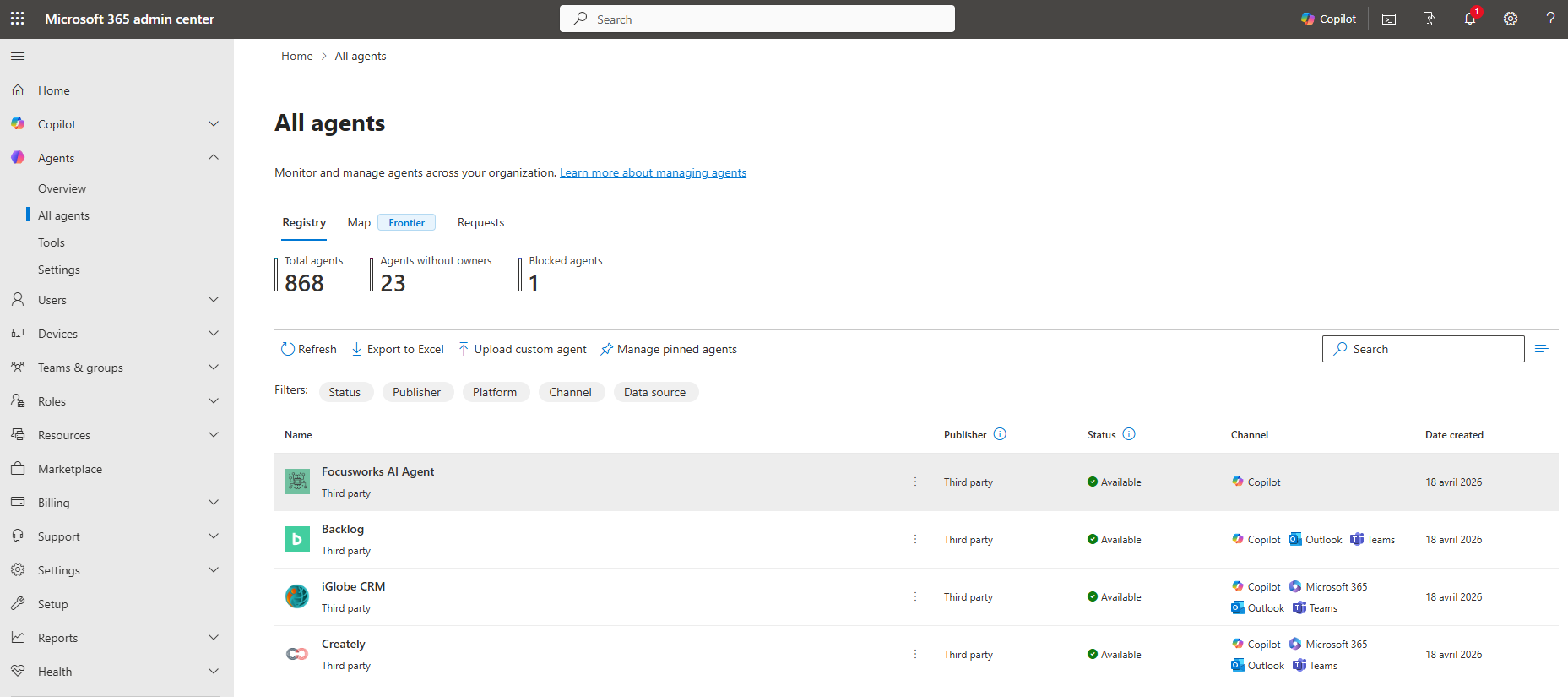 - À terme, les agents Copilot Studio et les agents provenant d’Agent 365 seront également visibles ici.
