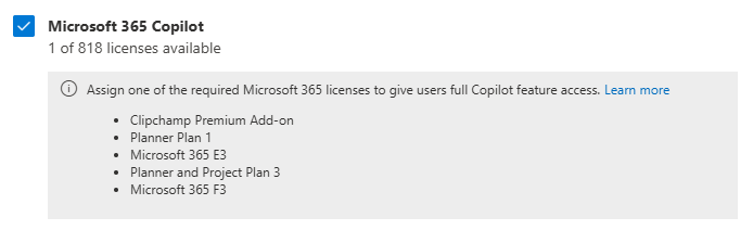 -AddLicenses @(@{SkuId = $CopilotSku.SkuId}) `