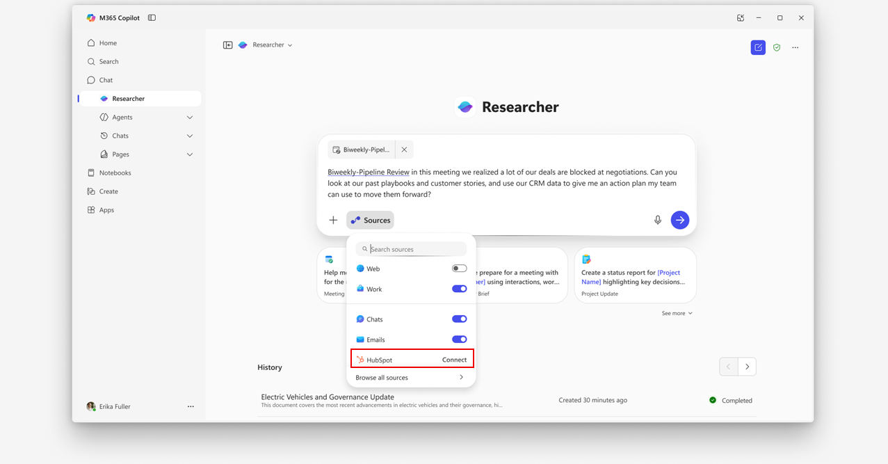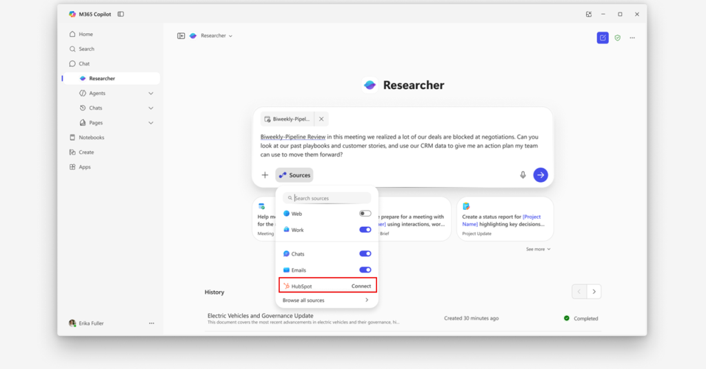 « Nous introduisons des connecteurs fédérés Copilot dans Microsoft 365 Copilot, permettant aux utilisateurs de connecter en toute sécurité des applications externes telles que Notion, Canva ou Hubspot directement dans des expériences Copilot comme Researcher. Contrairement aux connecteurs indexés traditionnels, les connecteurs fédérés utilisent le protocole de contexte modèle (MCP) pour accéder aux données en temps réel. Cela permet aux utilisateurs de récupérer et de lire des informations provenant de sources connectées en utilisant leurs propres identifiants, tout en maintenant la visibilité, le contrôle et la gouvernance au niveau administrateur dans le centre d’administration Microsoft 365. »