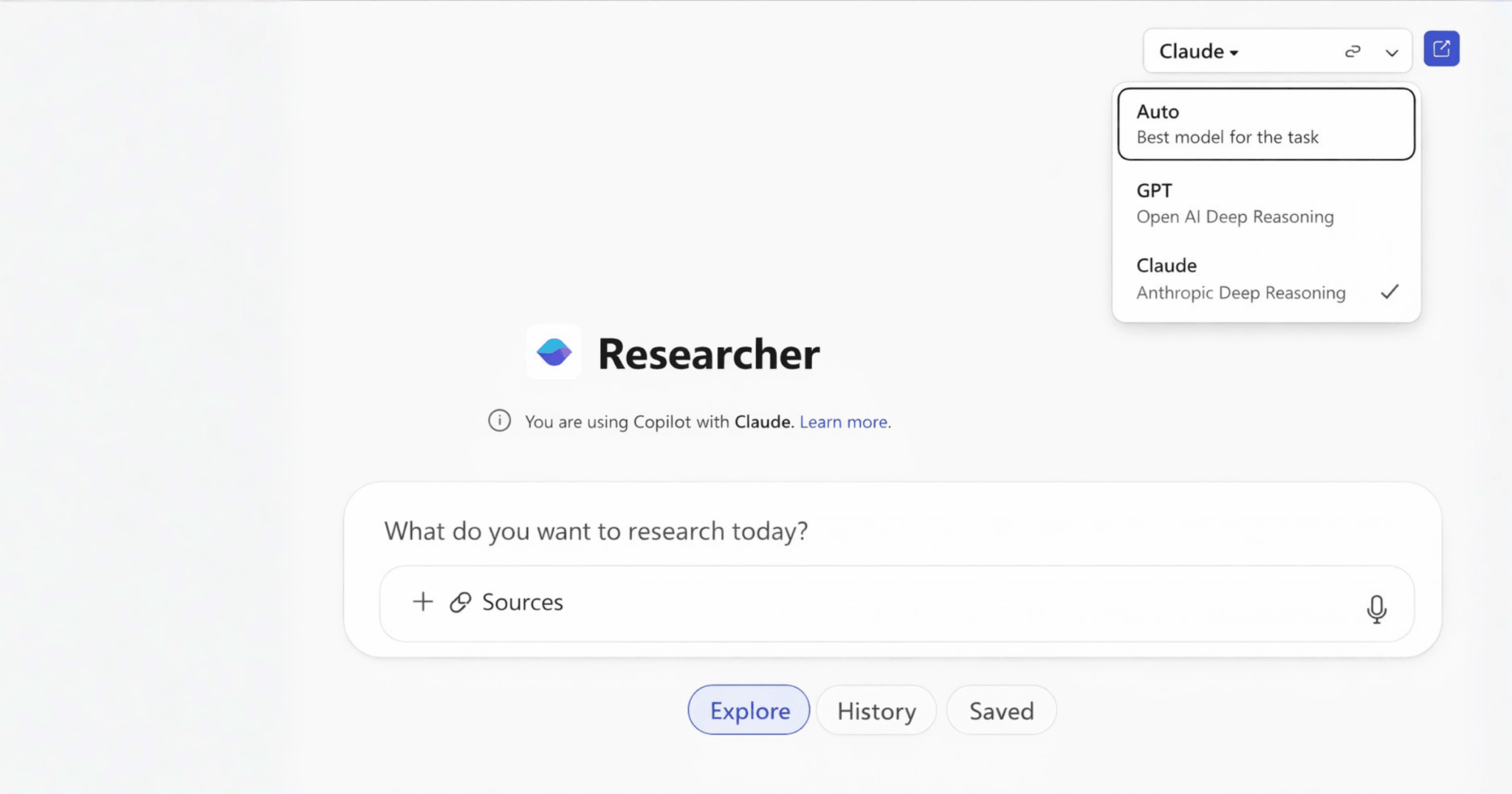 NB : Si vous voyez un sélecteur de modèle dans Copilot Chat proposant « Claude » ou « Anthropic » comme option, cela signifie que les modèles Anthropic sont activés sur votre tenant. Si vous ne voyez pas ce sélecteur, ils ne sont pas actifs.