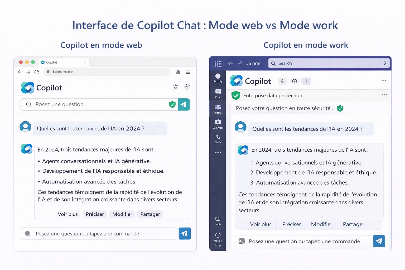 Ce Copilot Chat en mode « Work / Travail » :