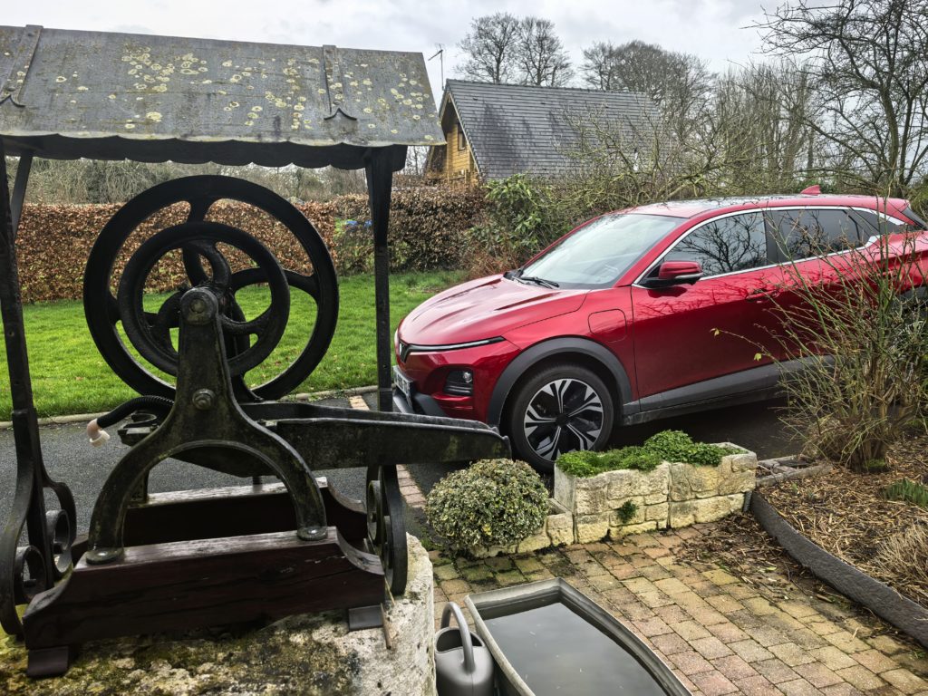 Ce qui m’a particulièrement impressionné sur la version Plus, c’est le niveau d’équipement de série. On retrouve un affichage tête haute en couleur projeté sur le pare-brise (HUD), ce qui est rare à ce prix. La caméra à 360 degrés est de la partie avec une vue en transparence de la voiture plutôt bluffante pour les manœuvres de stationnement. Les sièges avant sont chauffants et ventilés, recouverts de simili cuir de bonne facture. Il y a aussi un toit panoramique, des jantes de 19 pouces et un pack ADAS complet de niveau 2 avec régulateur de vitesse adaptatif et maintien de voie actif. Le volant est capacitif, ce qui permet au système de détecter si vos mains sont posées dessus sans avoir à exercer une pression comme sur d’autres véhicules. De quoi rouler sereinement sur l’autoroute avec l’Autopilot en réduisant la fatigue sur les longs trajets.