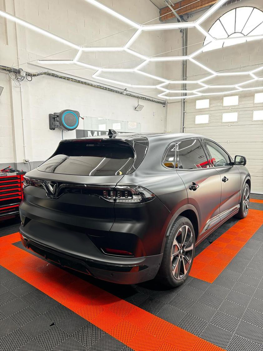 Concernant la couleur de mon véhicule, ce n’est pas la couleur d’origine comme dit plus haut dans cet article, mais un PPF (Paint Protection Film) de chez XPEL. J’ai fais appels aux services de la société MLK AUTO pour s’occuper de mon VF8. En plus du film de protection noir satin, j’ai fait poser des vitres teintées, un dé chromage total (pour remplacer les parties chromées par du noir brillant) et débadger le capot arrière (en retirant le logo VINFAST chromé).